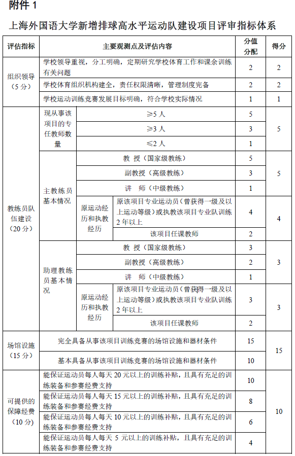 上海外国语大学排球队申请高水平运动队的评估报告