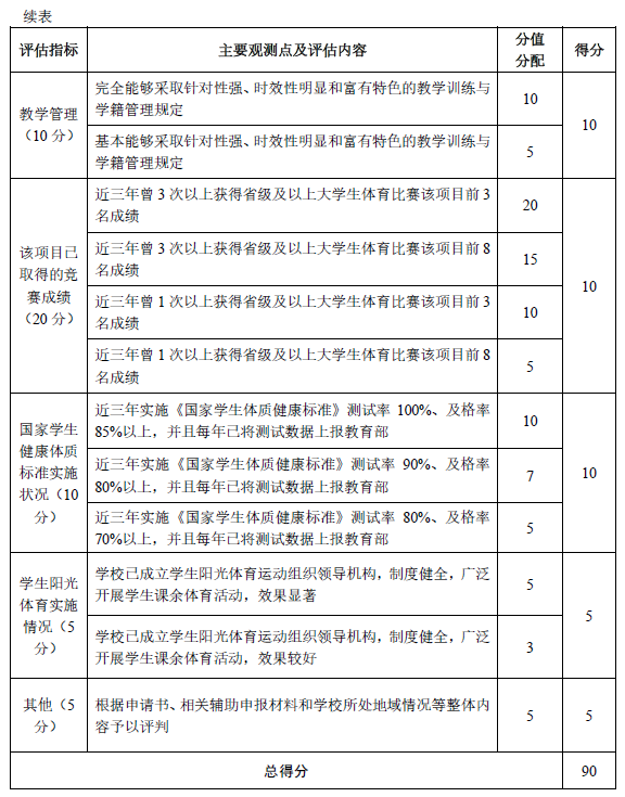 附:体育训练竞赛综合成绩占30%,由教练员评分。