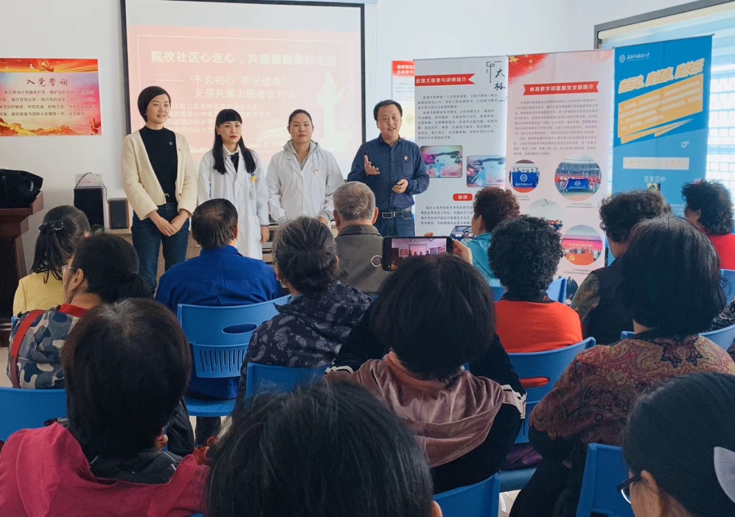 为推进“不忘初心、牢记使命”主题教育以学促做、以做践学,体育教学部直属党支部根据部门特色, 于11月8日下午与岳阳医院内科护理党支部、内科七党支部、曲阳街道东体党总支联合开展“院校社区心连心,共建健康美好生活”的志愿服务活动。
