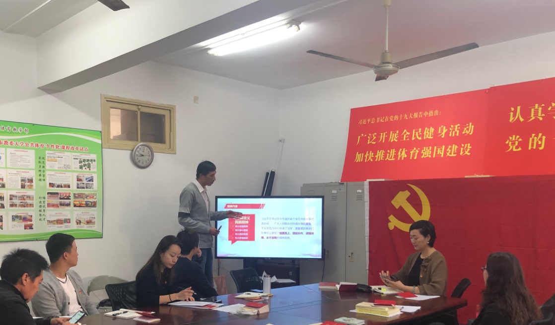 为了进一步深化主题教育精神内涵,贯彻落实主题教育内容,11月1日上午,体育教学部直属党支部继续进行党员上党课和对照党章检视问题。活动由支部书记刘海荣主持,全体教师党员参加本次活动。