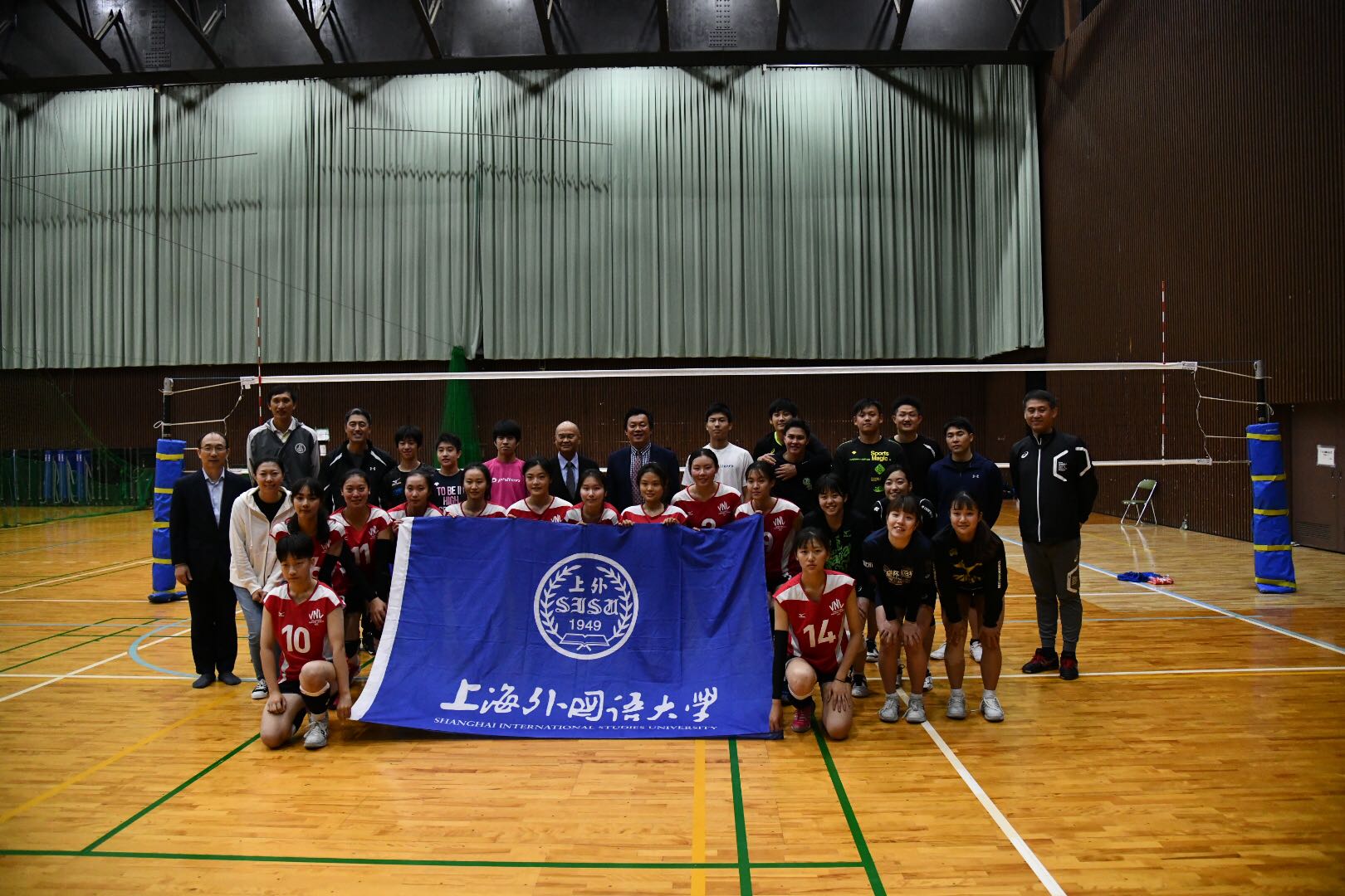 2019年11月8日-2019年11月15日,上海外国语大学排球高水平运动队赴日本大阪产业大学进行为期一周的交流学习。由王骏主任带队,排球队教练徐林胤和郁茵老师与14名师生从上海外国语大学出发,统一前往上海浦东国际机场飞往关西国际机场,产大孔子学院康林院长迎接队伍前往大阪产业大学招待所入住。