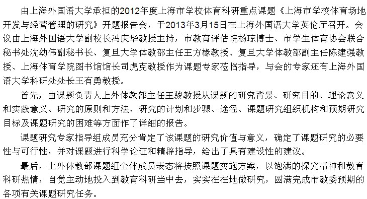 上海市2012年度学校体育科研重点课题开题报告会顺利举行