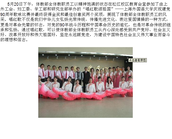 唱红歌 颂祖国——体教部直属党支部参加校庆祝建党90周年歌咏比赛
