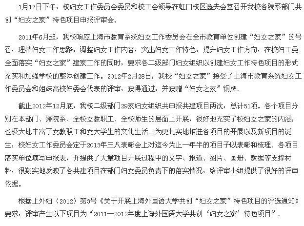 上海外国语大学共创“妇女之家”特色项目申报评审工作完成
