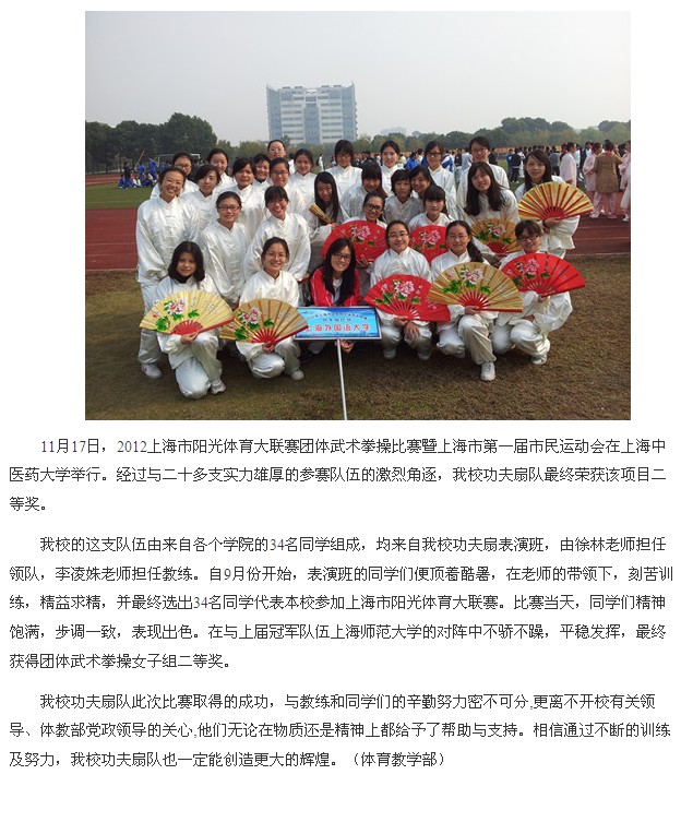 我校功夫扇队荣获2012年上海市学生阳光体育大联赛武术拳操女子组二等奖
