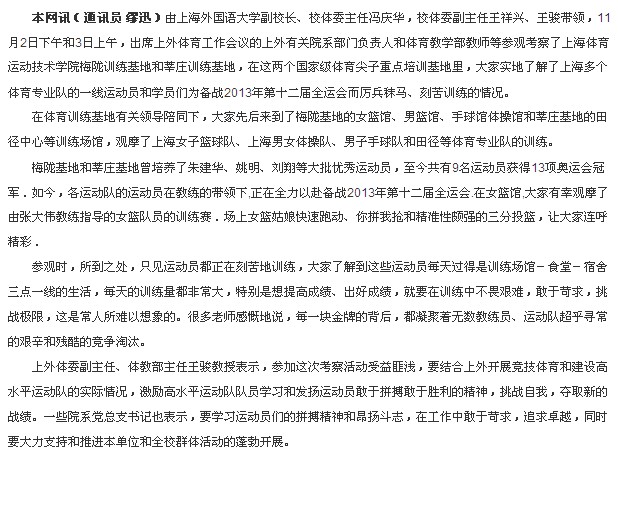 上海教育新闻网:上外干部教师参观考察市体育训练基地