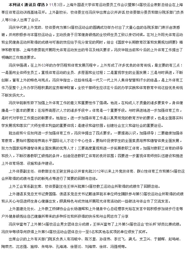 上海教育新闻网:上外召开体育工作会议暨校运会表彰总结会