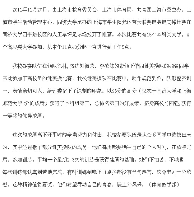 上外健美操队获高校学生阳光体育大联赛健身健美操比赛一等奖