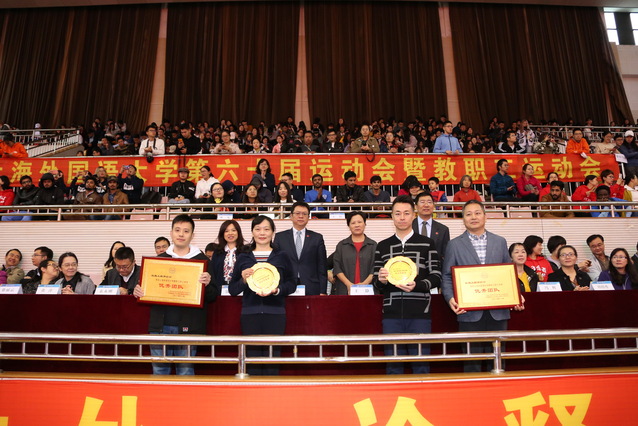 “体育承载着国家强盛、民族振兴的梦想。体育强则中国强,国运兴则体育兴。”近年来,以习近平同志为核心的党中央加大力度推进体育强国建设。在举国上下认真贯彻党的十九大精神,深入贯彻习近平新时代中国特色社会主义思想,团结各方力量积极推进体育事业改革发展的关键时刻,迎来了我校第六十届校运会暨教职工运动会。体育运动委员会主任杨力副校长致开幕词,校长李岩松宣布上海外国语大学第六十届运动会暨教职工运动会开幕。体育运动委员会副主任徐丽云、于朝晖分别宣布2017-2018年度上外学生和教职工群众体育先进集体、先进个人和体育突出贡献奖等奖项。