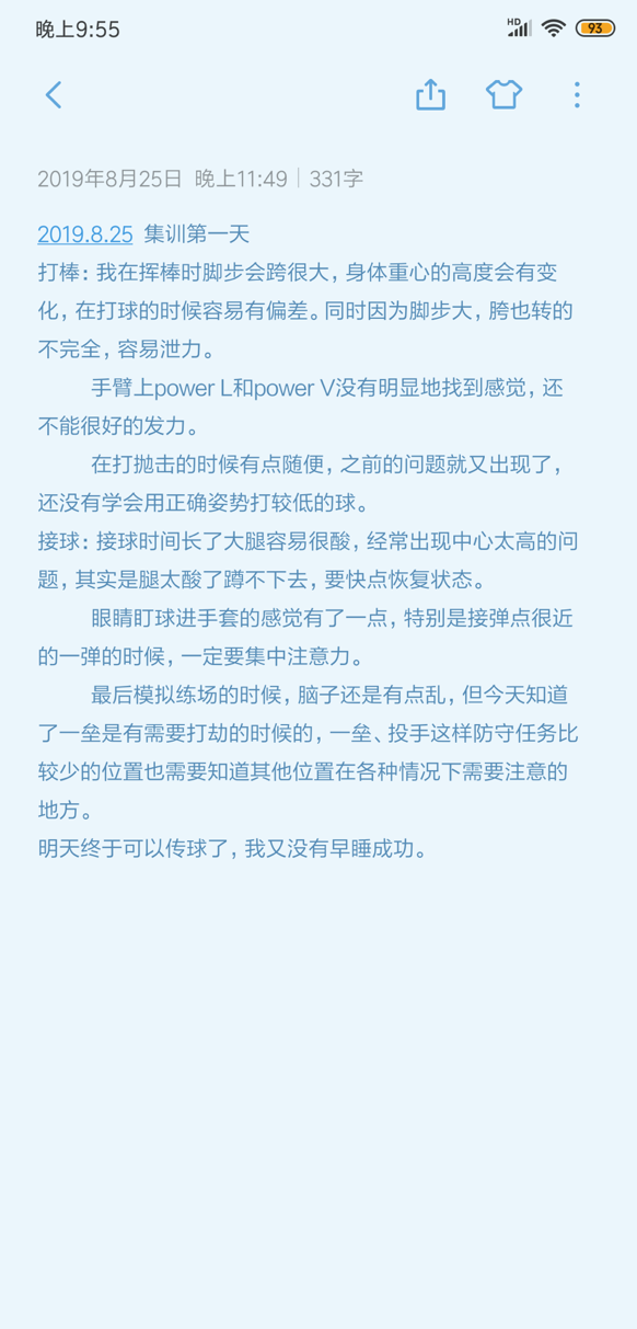 垒球的规则十分复杂,对于大部分大一才接触垒球的队员们,充分了解规则也是打好垒球必需的。在日常训练之外,部分队员会对训练进行反思,也会记下自己之前没有搞懂的问题。